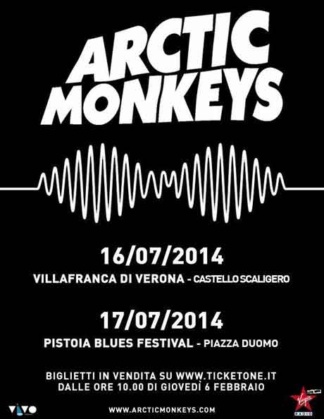 Buone notizie per i fans della rock band britannica Arctic Monkeys: il tour 2014 del gruppo capitanato da Alex Turner, sbarcherà anche in Italia (a luglio), esattamente al Castello Scaligero di Verona e Pistoia.