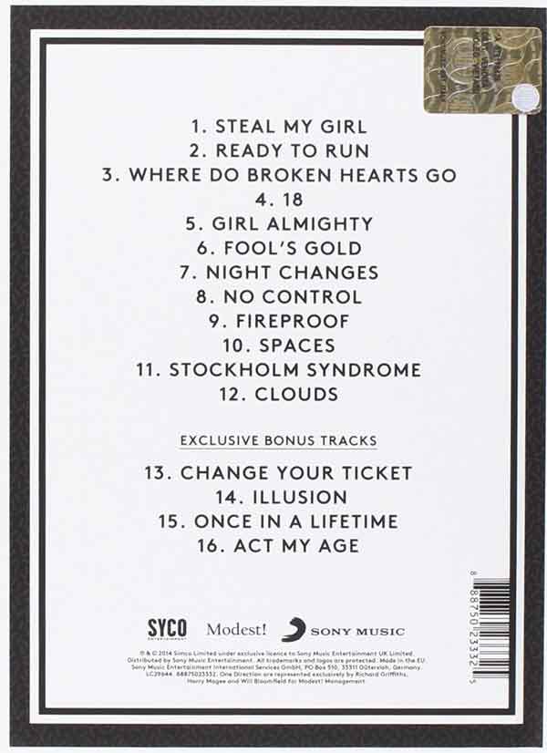 Dodici delle sedici canzoni incluse nel progetto, che in ben 67 Paesi ha dominato le classifiche dei pre-order, portano la firma di qualcuno o tutti i componenti del gruppo, il che dimostra la crescita artistica anche come autori di questi ragazzotti. A rendere più fascinoso il nuovo lavoro della boy band, la traccia battezzata “18“, in quanto porta la firma di Ed Sheeran e Oliver Frank. Sheeran aveva in precedenza lavorato con la band nei brani di successo Memories e Little Things, singolo numero 1 in classifica.
