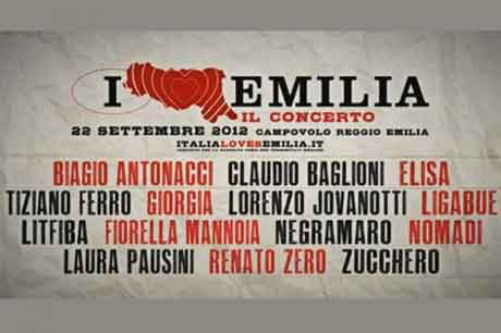 Il 22 settembre 2012, andrà di scena a Campovolo Italia Lover Emilia, manifestazione della quale sono stati rivelati gli orari e la scaletta. Saranno 14 i grandi cantanti che saliranno sul palco, per un concerto i cui proventi saranno interamente devoluti alla ricostruzione di istituti scolastici.