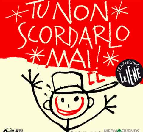 Tu non scordarlo mai è il singolo de Le Iene, il cui ricavato sarà interamente devoluto beneficenza al reparto di oncologia infantile dell’ospedale di Bergamo. Tale iniziativa è infatti nata per aiutare i bambini affetti da patologie onco-ematologiche, che sono ricoverati nel reparto di Pediatria dell’ospedale Papa Giovanni XXIII di Bergamo
