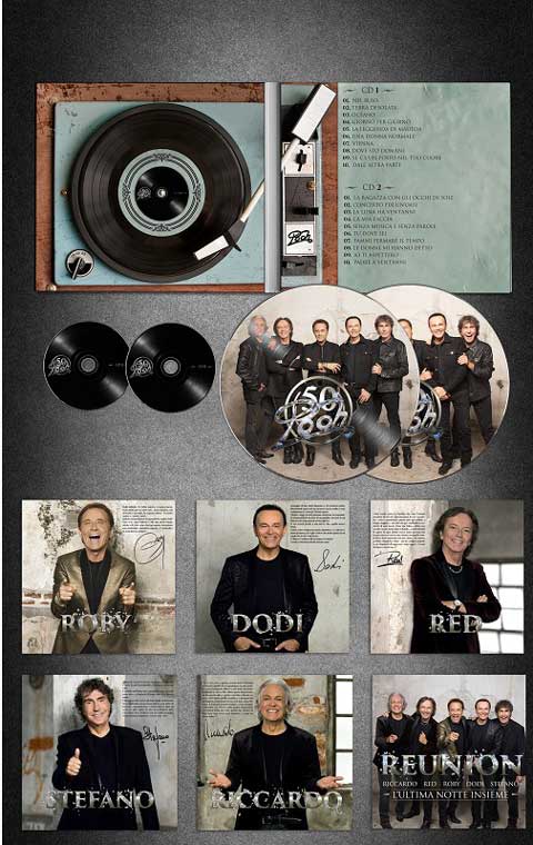 Per festeggiare il 50esimo anniversario e la recente reunion, il 5 febbraio esce Pooh 50, cofanetto composto da un doppio CD e vinile. La storica e amata band, il 28 gennaio 2016 ha infatti compiuto 50 anni dalla nascita e da qualche mese, ha dato vita ad un’eccezionale reunion, che vede insieme Roby Facchinetti, Dodi Battaglia, Red Canzian, Stefano D’Orazio e Riccardo Fogli, per la prima volta in una formazione a cinque.
