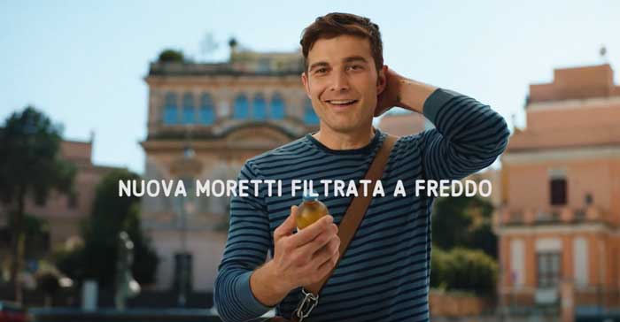 Da aprile 2021 vengono trasmessi diversi spot della Birra Moretti: una campagna globale presente in 50 Paesi nel mondo e una esclusivamente per l’Italia (sezione aggiornata con nuovo spot “In buona compagnia, così come siamo” trasmesso da domenica 4 maggio, che utilizza lo stesso brano di quello precedente). Iniziamo dai tre spot globali. Vi dico subito che la canzone, la cui voce sembra quella di Rita Pavone, dovrebbe essere stata realizzata appositamente per la campagna. Quel poco che si riesce a capire è: “Non mi fermare, faccio quello che mi pare, sempre e solo con amore resto a terra ma la testa va.” e poco altro. Edit: grazie all’utente dabogirl, scopriamo che la cantante è Ilaria Mangiardi.