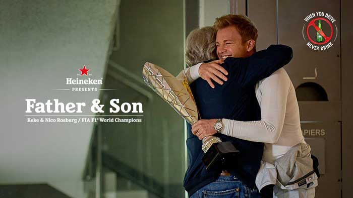 Dal 31 maggio 2020 viene trasmesso in tv il nuovo spot della birra Heineken che vede protagonista l’ex pilota tedesco di Formula Uno, Nico Rosberg (già protagonista di uno spot Heineken del 2019), che dopo essere stato per due volte vicecampione del mondo ed essersi proclamato campione del mondo nel 2016, decise di ritirarsi dalle corse. Insieme a lui il padre Keke, campione del mondo nel 1982.