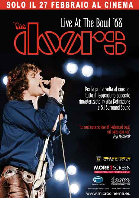 Solo ed esclusivamente il 27 febbraio 2013, sarà trasmessa nei migliori cinema la versione integrale del concerto The Doors Live At The Bowl ’68, spettacolare evento che si svolse e venne quindi registrato nel lontano 1968 all’Hollywood Bowl di Los Angeles. Live At The Bowl ’68, è uno degli eventi rock più importanti della storia. La migliore performance della band capitanata dal mitico James Morrison, con audio da favola ed immagini nitide.