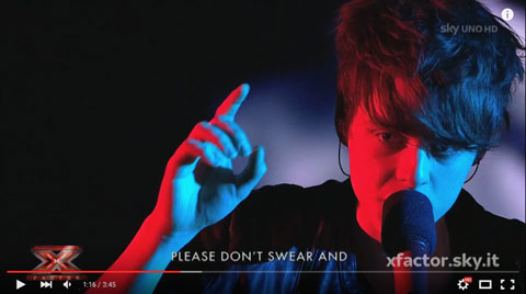 Ho avuto modo di ascoltarlo e devo dire che è davvero molto bello. Cliccando sull’immagine sottostante, accedete al video live da X Factor 9, con il testo in inglese sottotitolato, parole che abbiamo anche trascritto e tradotto in italiano. I testi li trovate appena dopo l’immagine.